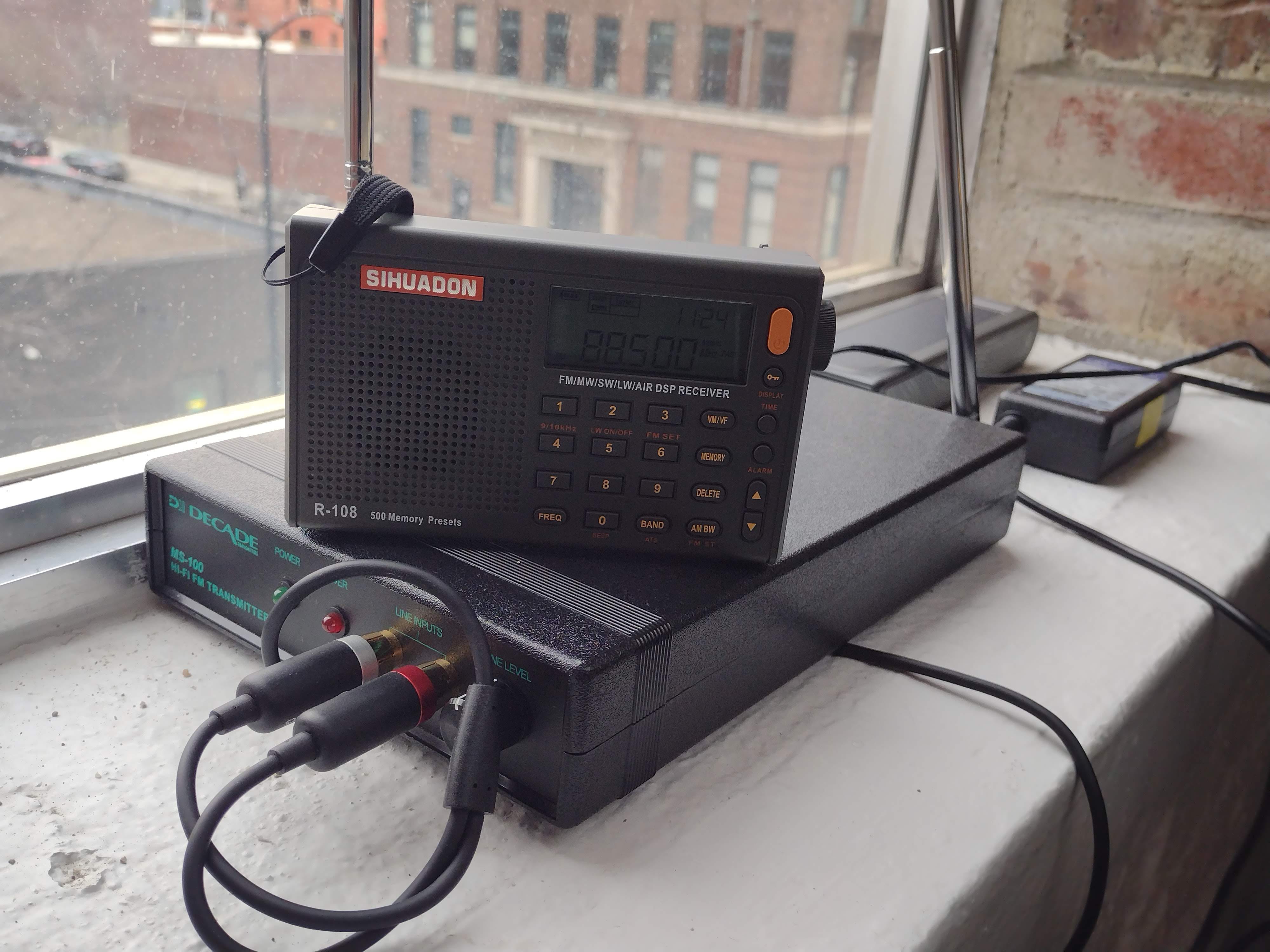 I wanted a little portable radio with certain specs and the word robot suggested the Sihuadon R-108. $45. I like it. It’s tiny, 3” x 5” and not quite an inch deep. AM/FM/Airband/Longwave/Shortwave. No menu. Easy to scan and preset. Easy to adjust. I heard The Report Of The Week’s shortwave radio show on Wednesday evening. I heard local airport chatter. And I heard my 88.5 FM station.